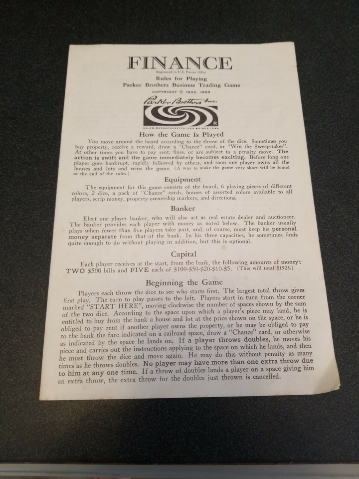 - Vintage Finance and Fortune Board Game by Parker Brothers 1962 replacement piece