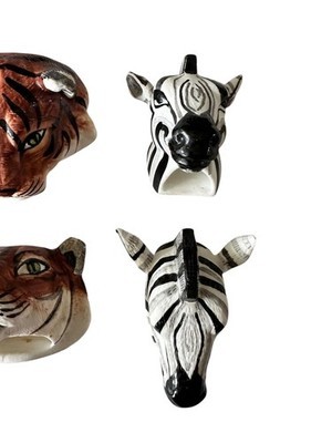 This charming safari-inspired collection includes two tigers, two leopards, and two zebras, each intricately detailed with expressive eyes and realistic coloring. Perfect for collectors, animal lovers, or anyone looking to add a unique conversation piece to their table setting.