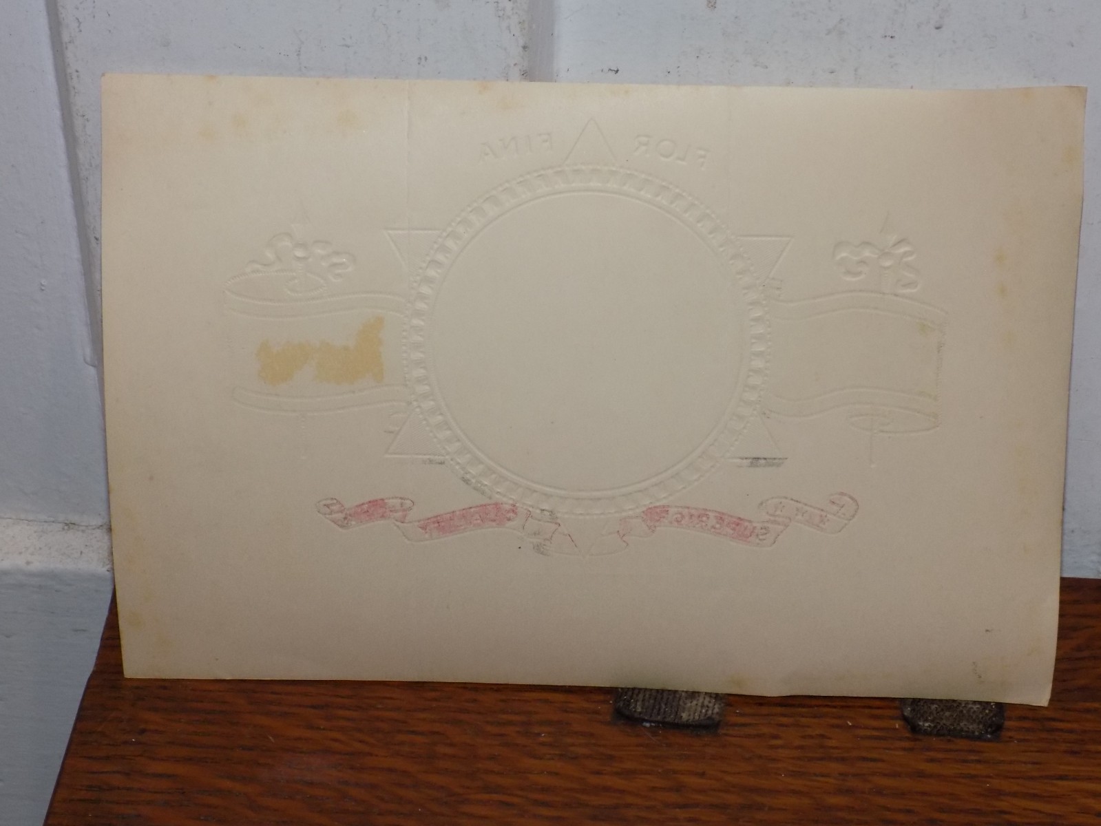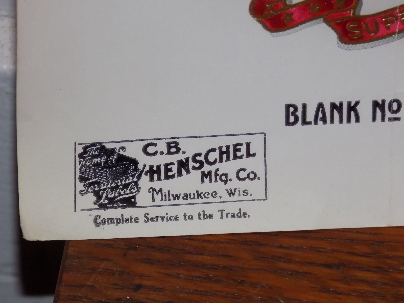 Embossed Paper label. It measures approx.. 9 inches wide x 6 inches tall. Label