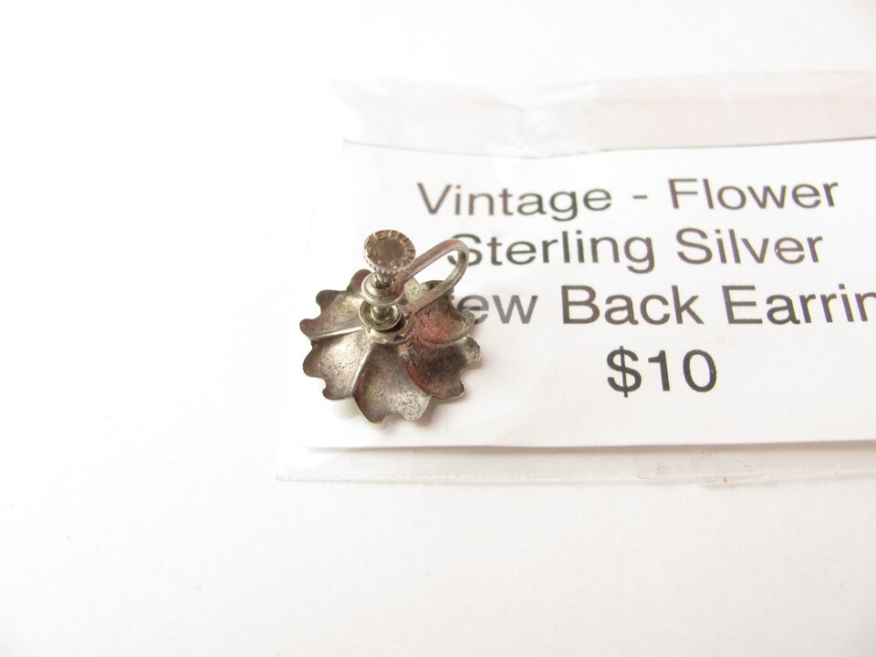 - VINTAGE FLOWER 925 STERLING SILVER SCREW BACK EARRING