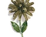 Vintage Flower Floral W/ Stem & Leaves Brooch Pin 2” X 3 1/2” Painted Metal