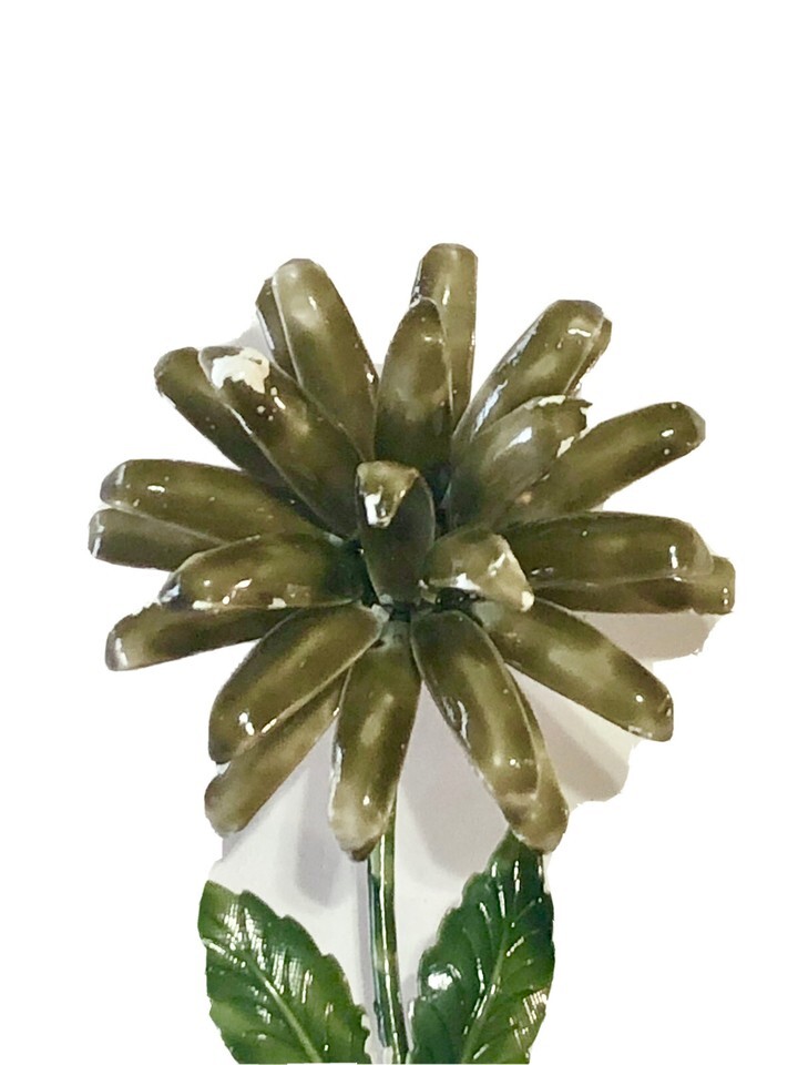 - Vintage Flower Floral W/ Stem & Leaves Brooch Pin 2” X 3 1/2” Painted Metal