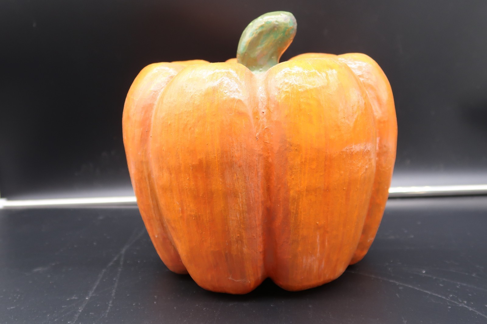 - Vintage Folk Art Paper Mache Pumpkin 8" Halloween Fall Harvest Table Decor