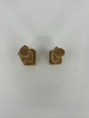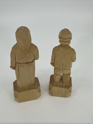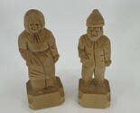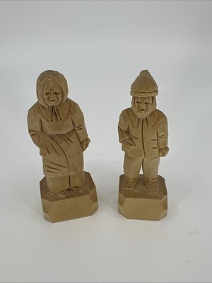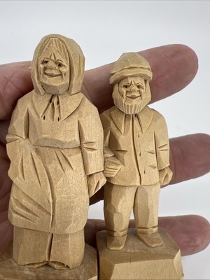 - Vintage Folk Art Quebec Hand Carved Natural Wood Old Man And Woman 3” Tall