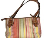 - Vintage Fossil Y2K Striped Pastel Fabric Satchel Purse Double Leather Handle