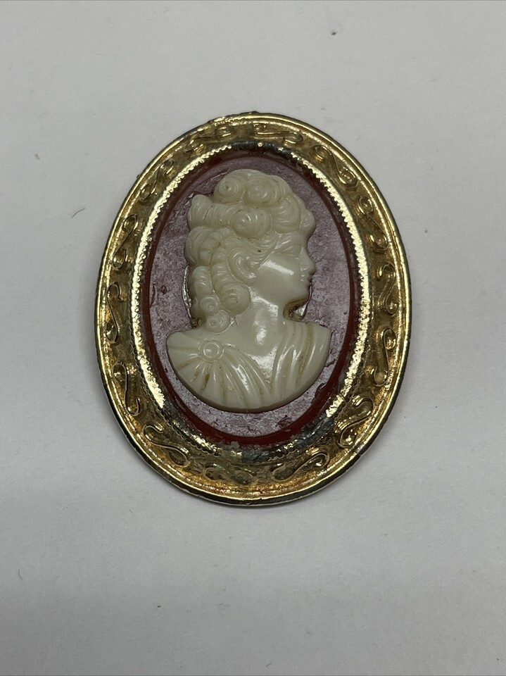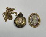 - Vintage Framed Cameo Pendant Necklace & Pin Long Calibri Quartz Swiss CV JD