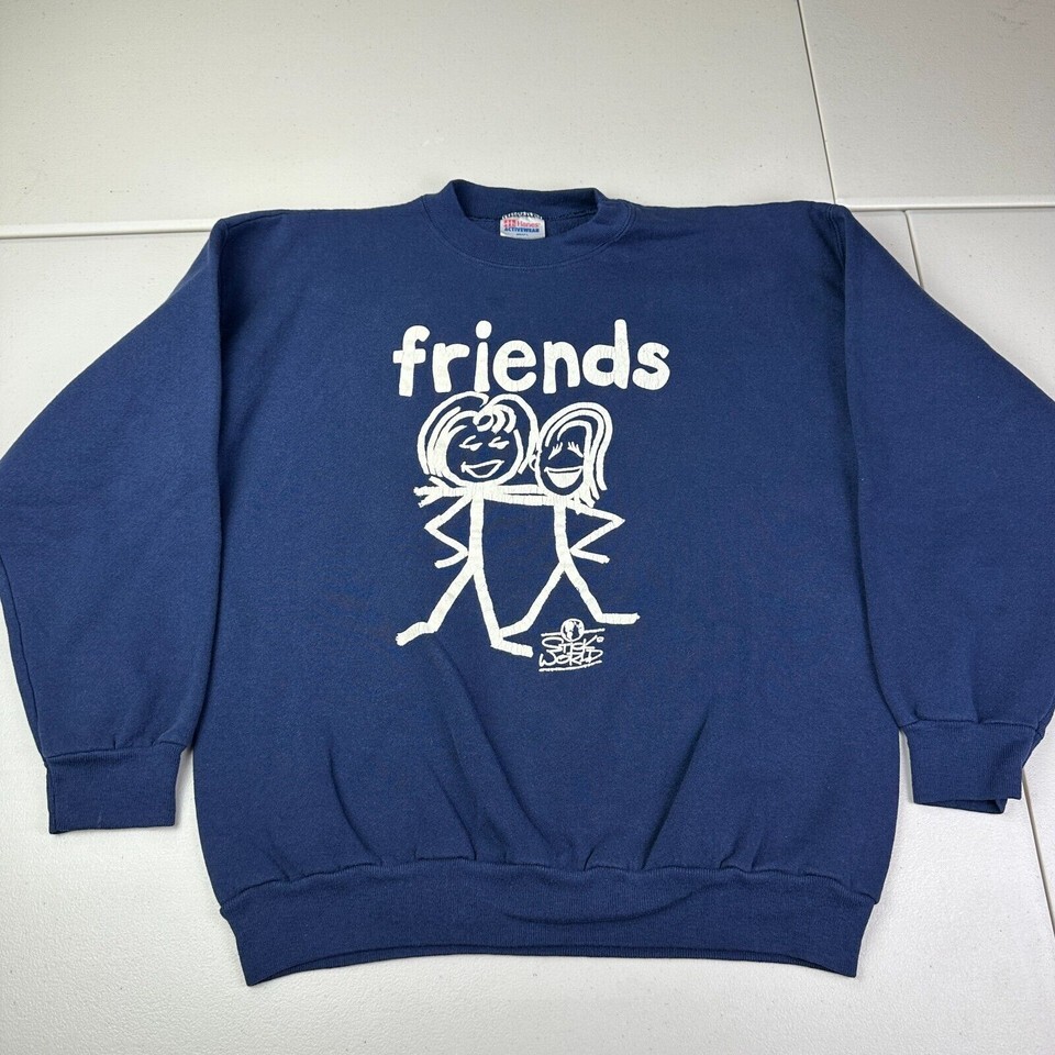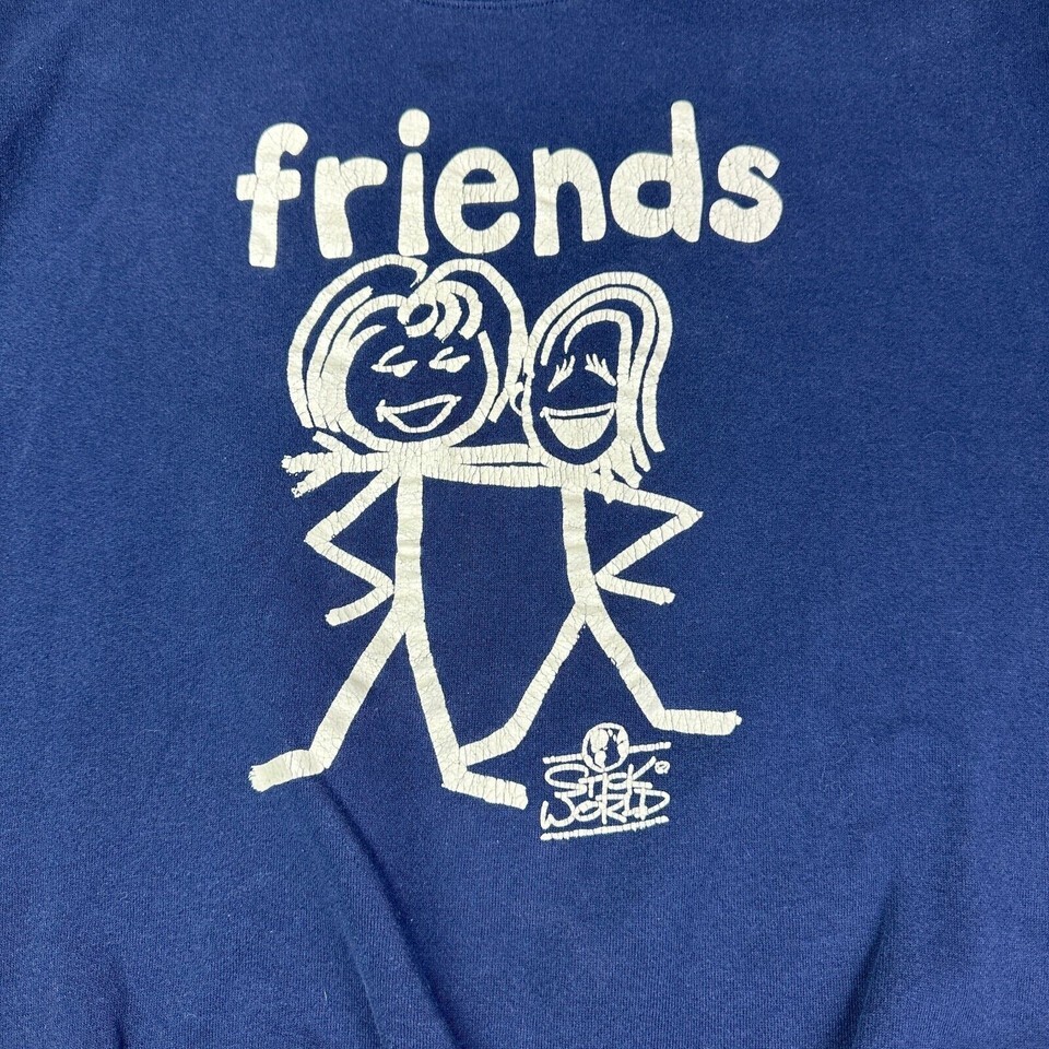 - Vintage Friends Stick World Navy Blue Sweater Adult Size Large L
