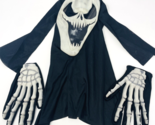 for a Fun World Easter Unlimited viper face mask with gloves. The skeleton gloves are kind of poorly made and the plastic bits are peeling up from the fabric. They fit my smallish hand and are likely meant for youth, the mask is one size and could probably be for children or adults.
