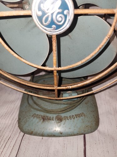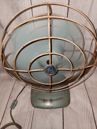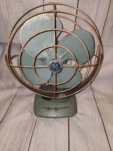 - Vintage GE 12” Table Top Fan Light Blue Aqua,white, Petina #A-103 10'' blade