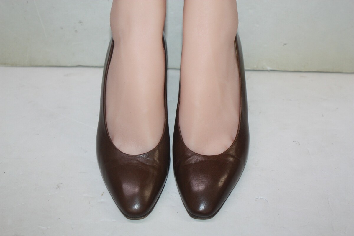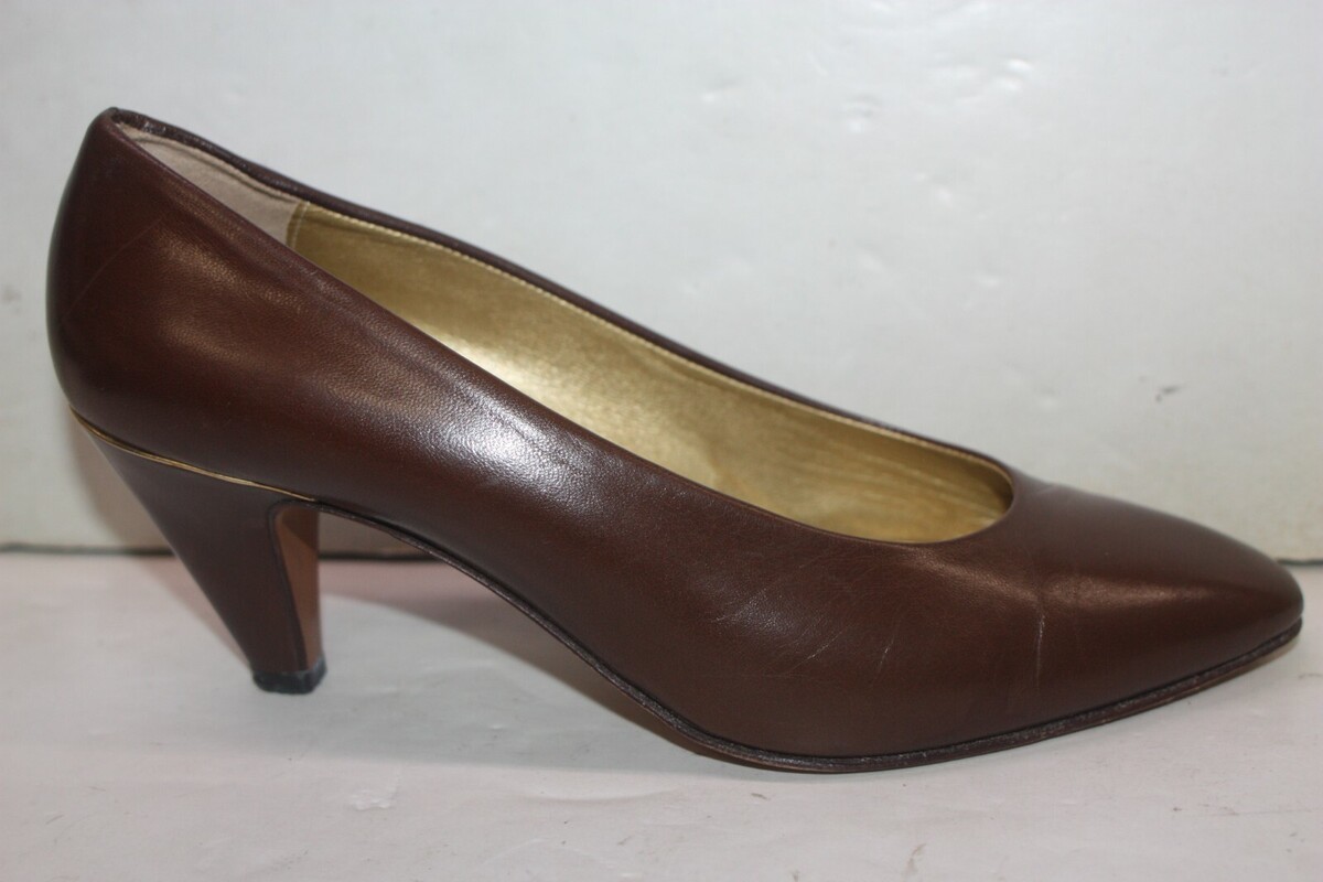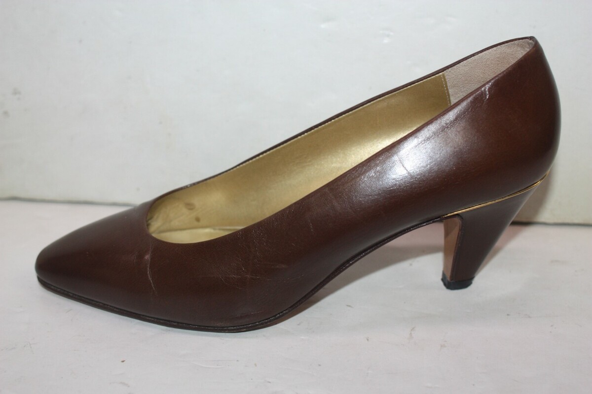 Vintage GUCCI Brown Calfskin Leather Gold GG Logo Pump Heels Size 36.5 / 6.5 US
