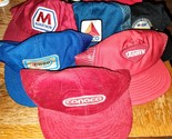 Small lot of 6 v8ntage trucker hays from brand gas stations era mostly 1980s. Vary in material, ajd are sold as is. due to age , these vitnage hats may have small imperfections or wear and age. They are unworn and had heen boxed over 20 years.