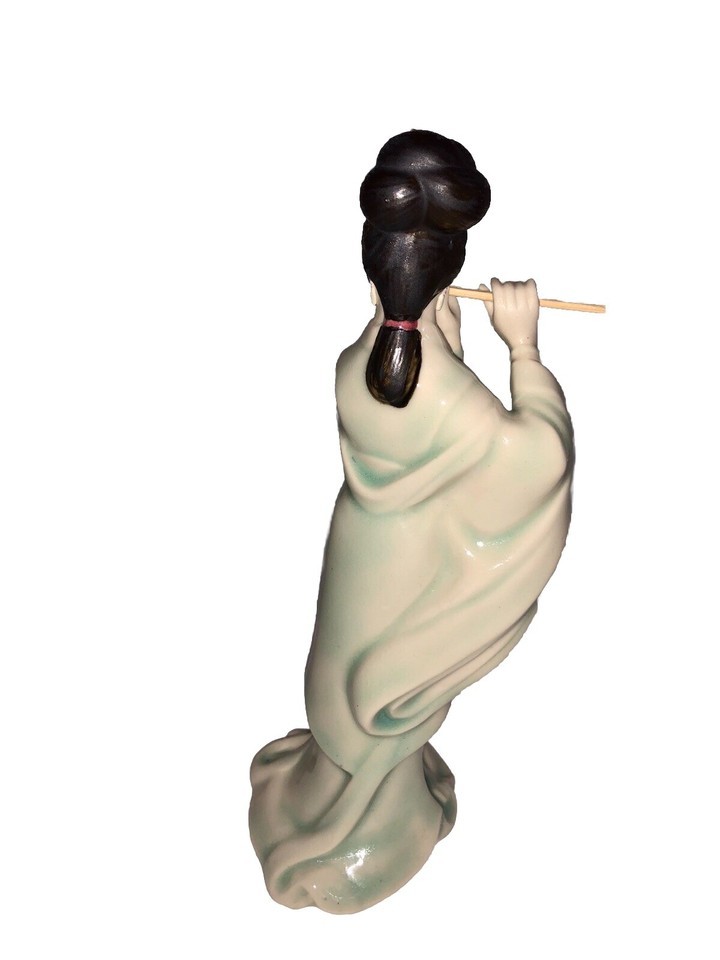- Vintage Geisha Girl Playing A Flute Figurine Asian Japanese 7.75” Inches Tall