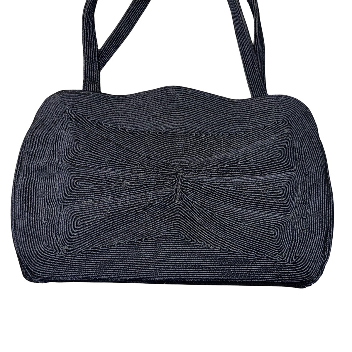 - Vintage Genuine Corde Handbag Black Top Handle Purse Kiss Lock 1940s–50s Used