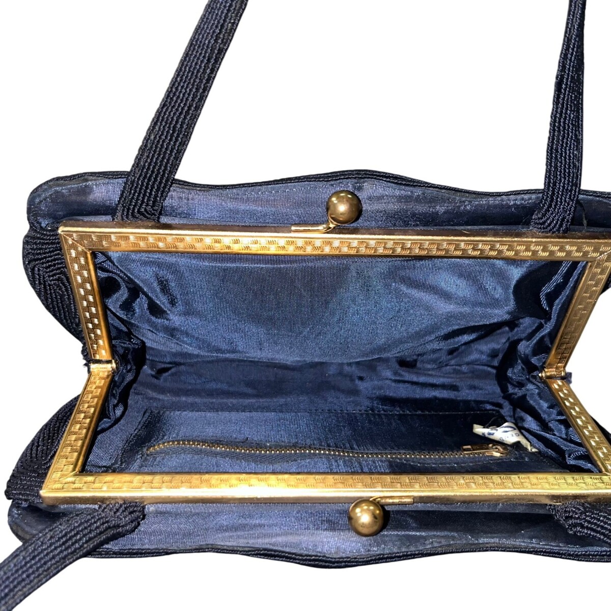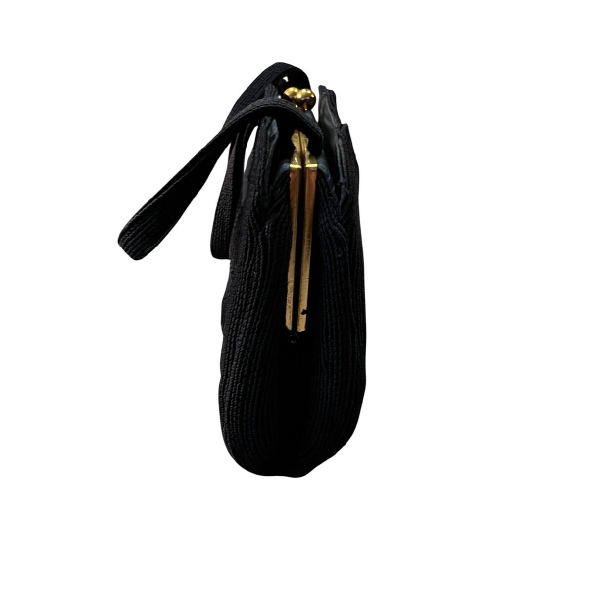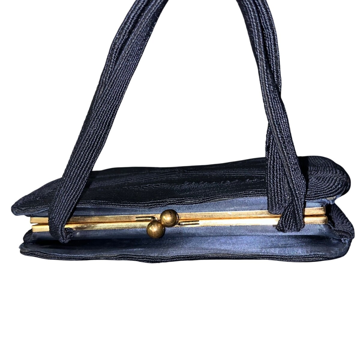 Keywords: corde bag, 1940s purse, 1950s handbag, corded handbag, vintage evening bag, gold frame purse, black corde purse, retro accessories, midcentury fashion, New Years Eve