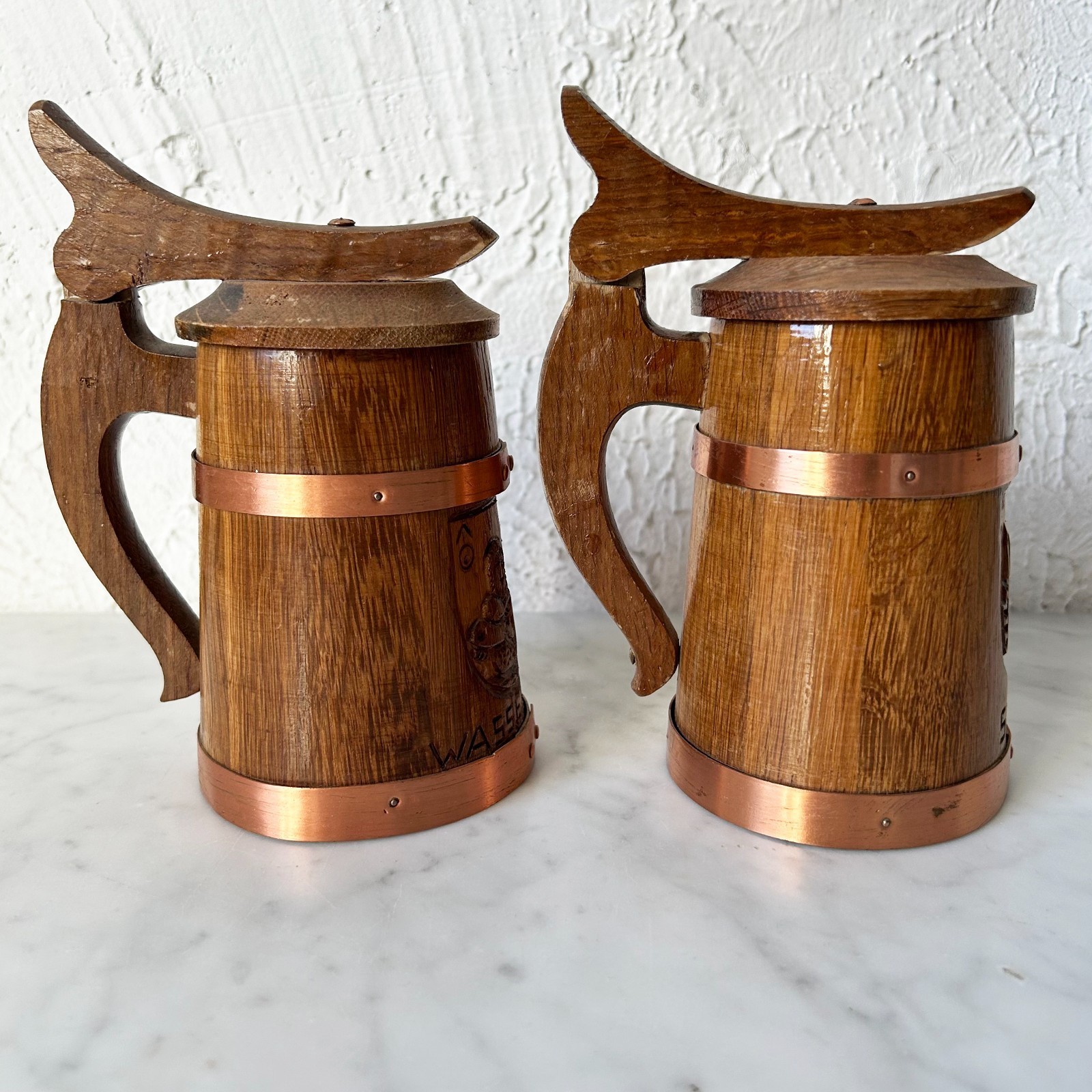- Vintage German Zodiac Wooden Beer Steins Aquarius & Scorpio Copper Trim Lidded