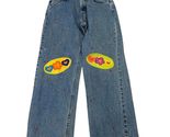 Vintage Girls Embellished Blue Denim Jeans W/ Heart & Flower Patches Funky Y2K