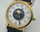 - Vintage Gitano Quartz Watch Unisex Moon Phase Gold Tone Leather Band New Battery