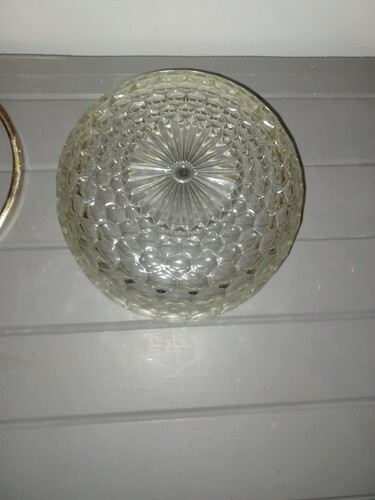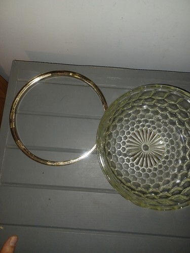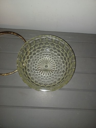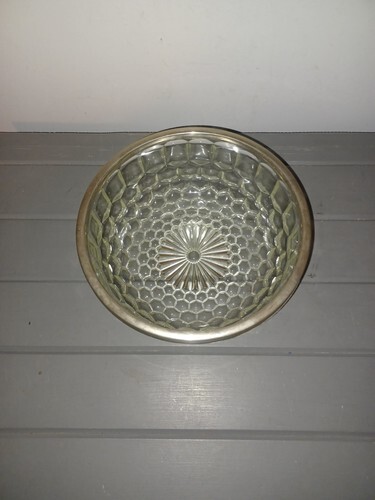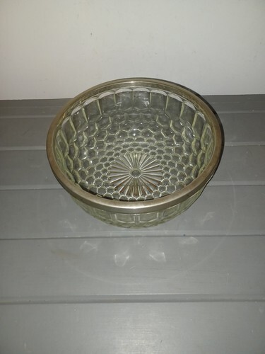 - Vintage Glass Bowl with Teardrop Honeycomb Pattern and Silver Rim