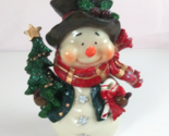 Vintage Glittery Bobble Head Snowman Holding Christmas Tree 6" Figurine