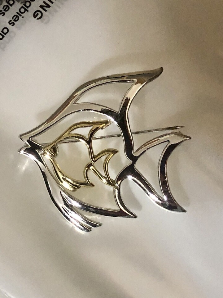 - Vintage Gold Silver Tone Danecraft Fish Brooch Pin 1 7/8” Long Two-Toned Ocean