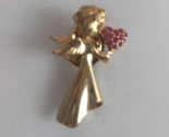 Vintage Gold Tone Angel Holding Pink Jeweled Heart Lapel Hat Pin