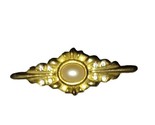 - Vintage Gold Tone Rhinestone Faux Pearl Cabochon Bar Brooch Pin