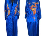 - Vintage Golden Bee Women’s Embroidered Dragon Silk Blend Robe Sz L Blue W/ Belt