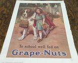Vintage Grape nuts cereal poster To school well fed on grape nuts girl and dog