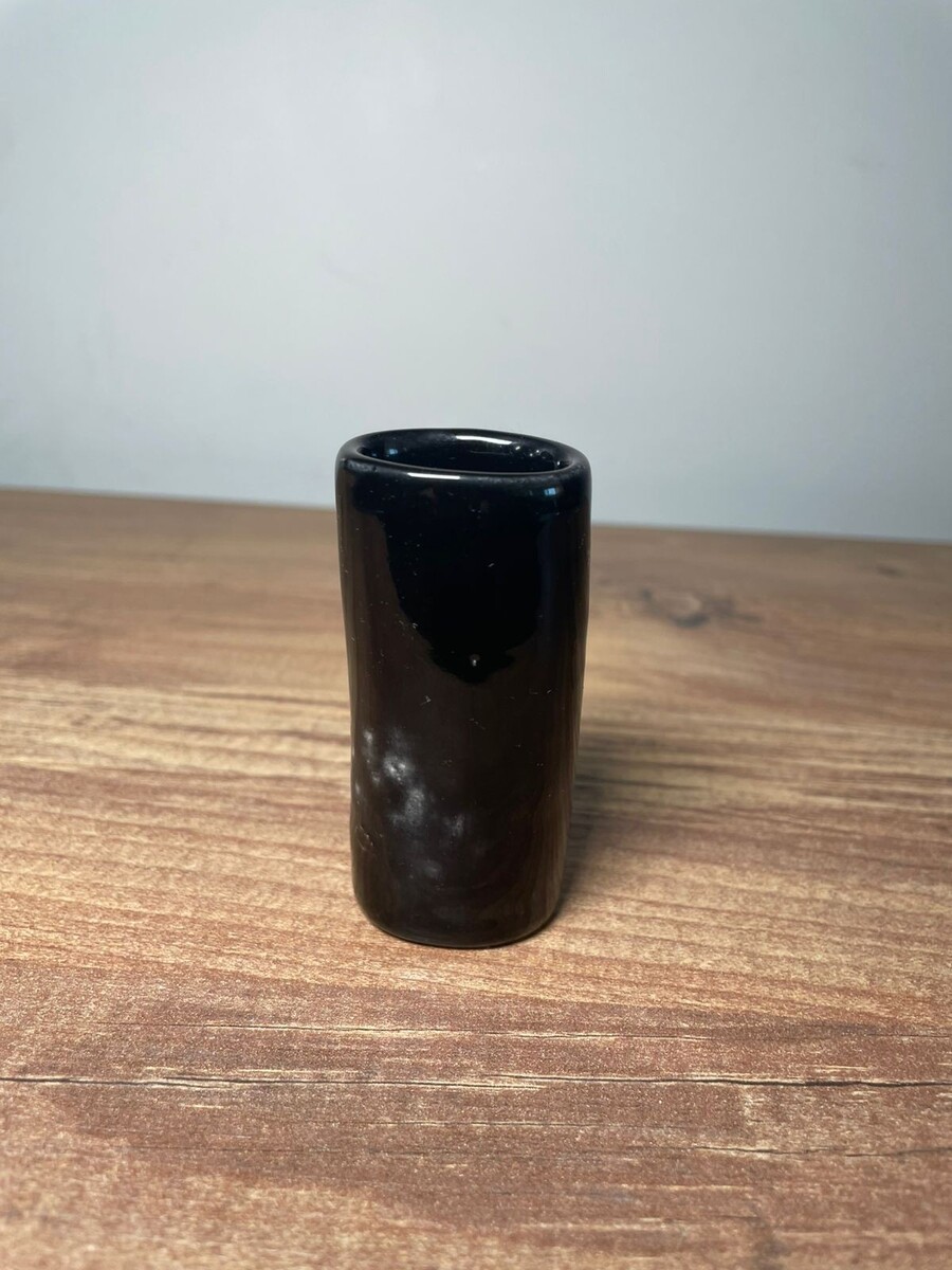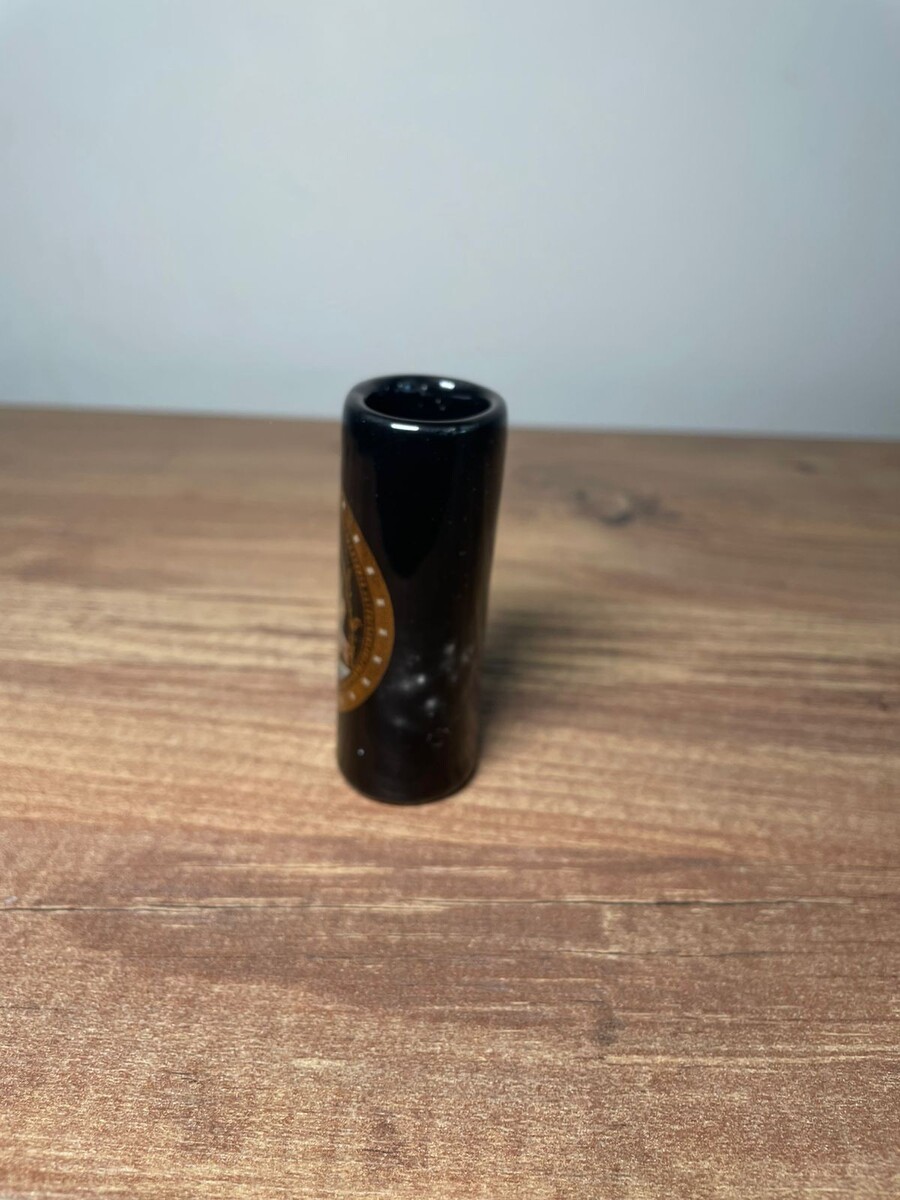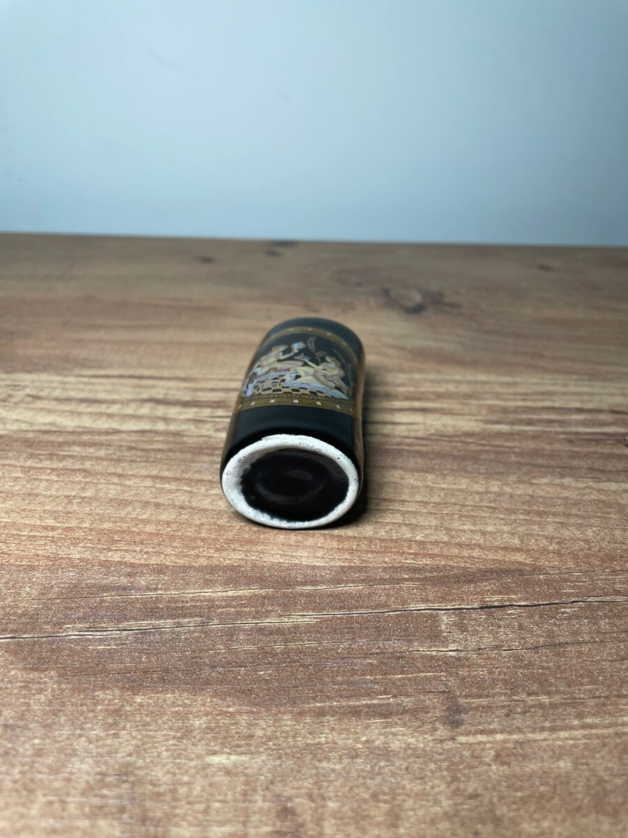 - Vintage Greek Ceramic Lighter Holder or Mini Vase – Black & Gold Mythological