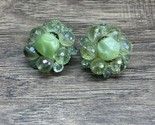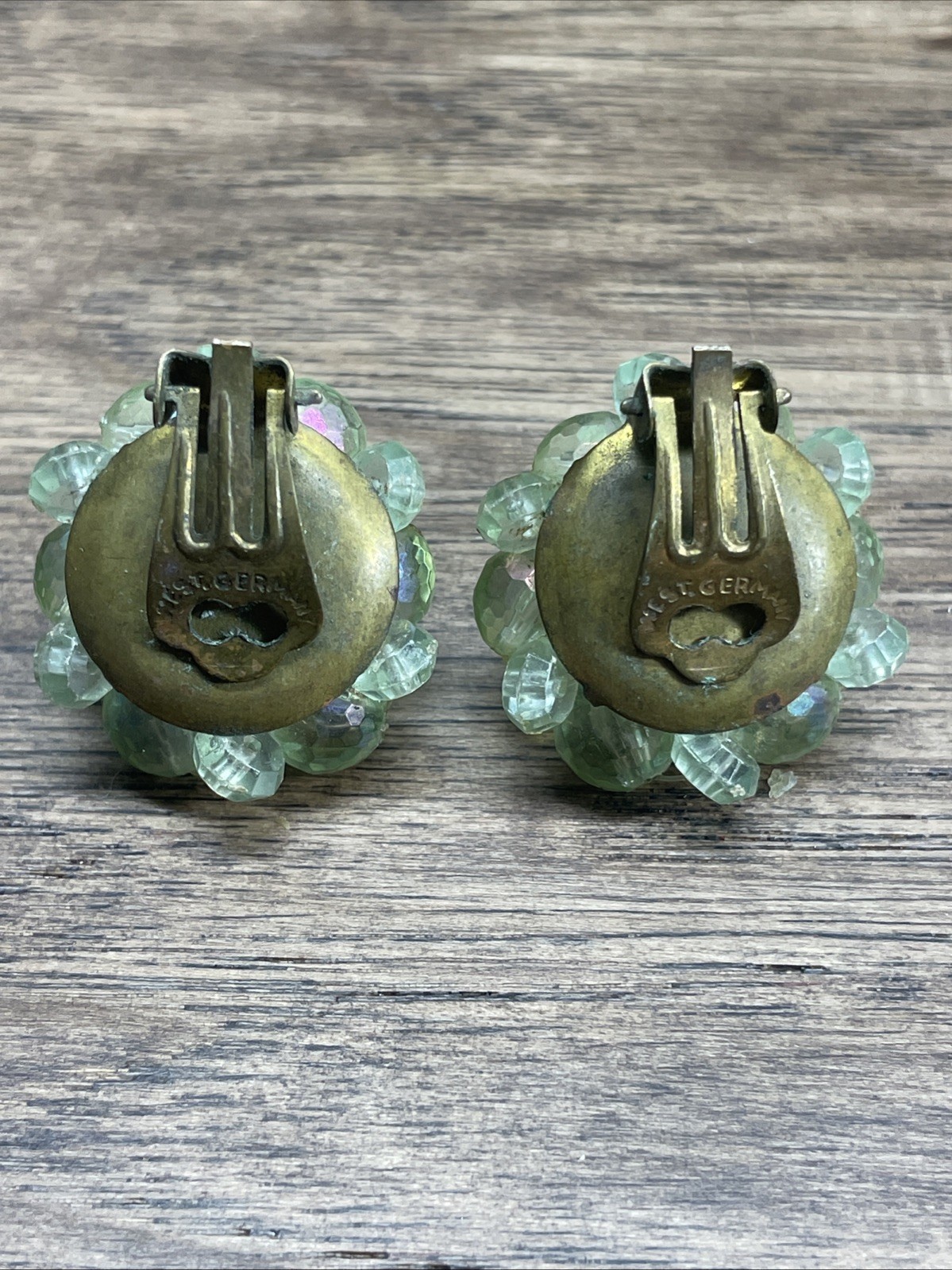 - Vintage Green Beaded Cluster Clip On Earrings West Germany Estate Jewelry KG JD