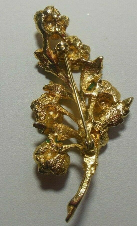 Vintage Green Yellow Floral Enamel Metal Brooch