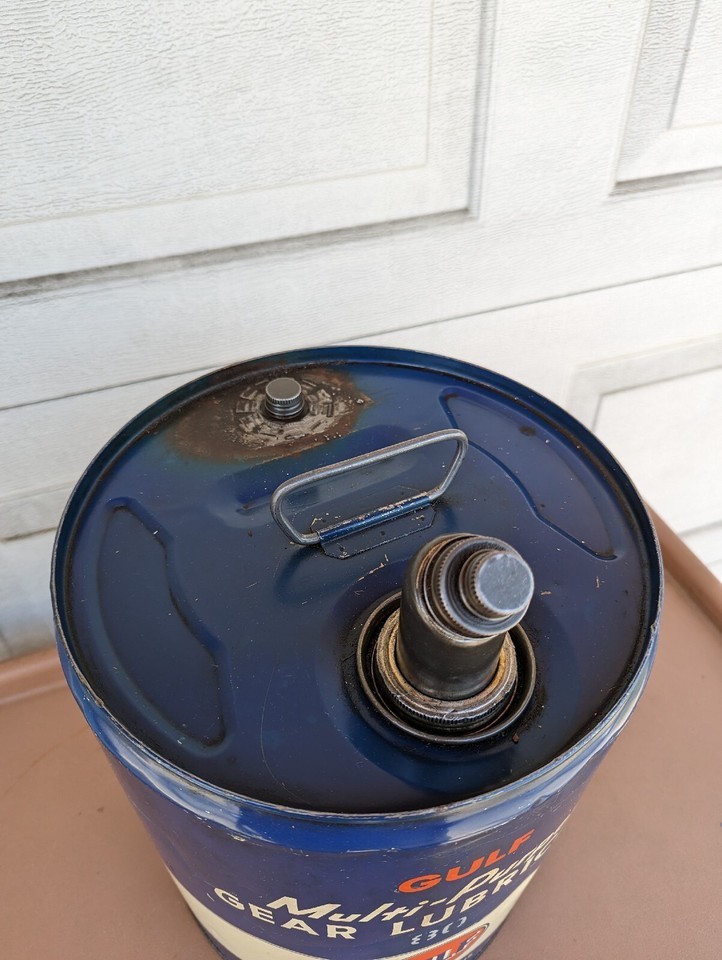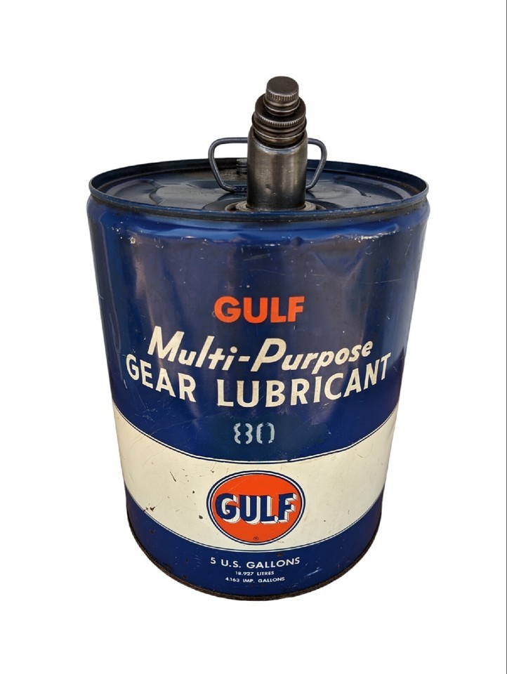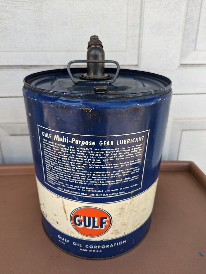 - Vintage Gulf 5 Gallon Can Multi Purpose Gear Lubricant 80 **NICE** Oil USA
