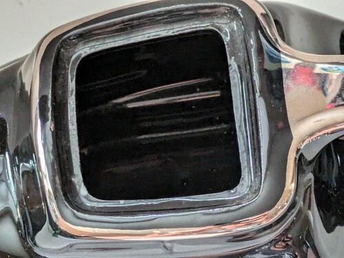 This vintage Hall China teapot is a unique addition to any collection. With a sleek automobile shape and glossy black finish, it is sure to catch the eye. Made in the United States in 1935, this antique teapot is a rare find for any tea enthusiast. Handmade with care instructions for hand washing only, this original piece is a beautiful representation of American art deco style. The backstamp is printed and the production technique is pottery. The teapot is unboxed and the packaging is not included. This vintage Hall China teapot is a must-have for any collector or lover of unique and beautiful pieces.