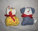 - Vintage Hallmark 1981 & 82 Blue Gingham Puppy & Yellow Calico Kitty Cat Ornament