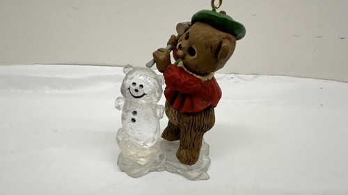This vintage Hallmark 1981 "The Ice Sculptor" Keepsake Ornament #OX432-2 is a beautiful addition to any Christmas tree. Made in Hong Kong, this small bear-shaped ornament features a multicolor ice design and is an original piece from the 1980s. It is perfect for anyone who loves vintage ornaments and wants to add a unique touch to their collection. This ornament is an excellent gift for anyone who loves bears or ice-themed items.