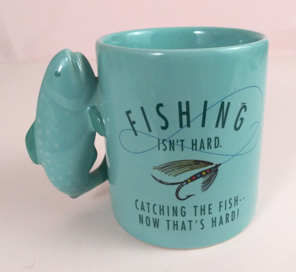 - Vintage Hallmark Fishing Isn't Hard Fish Handle Blue Coffee Cup