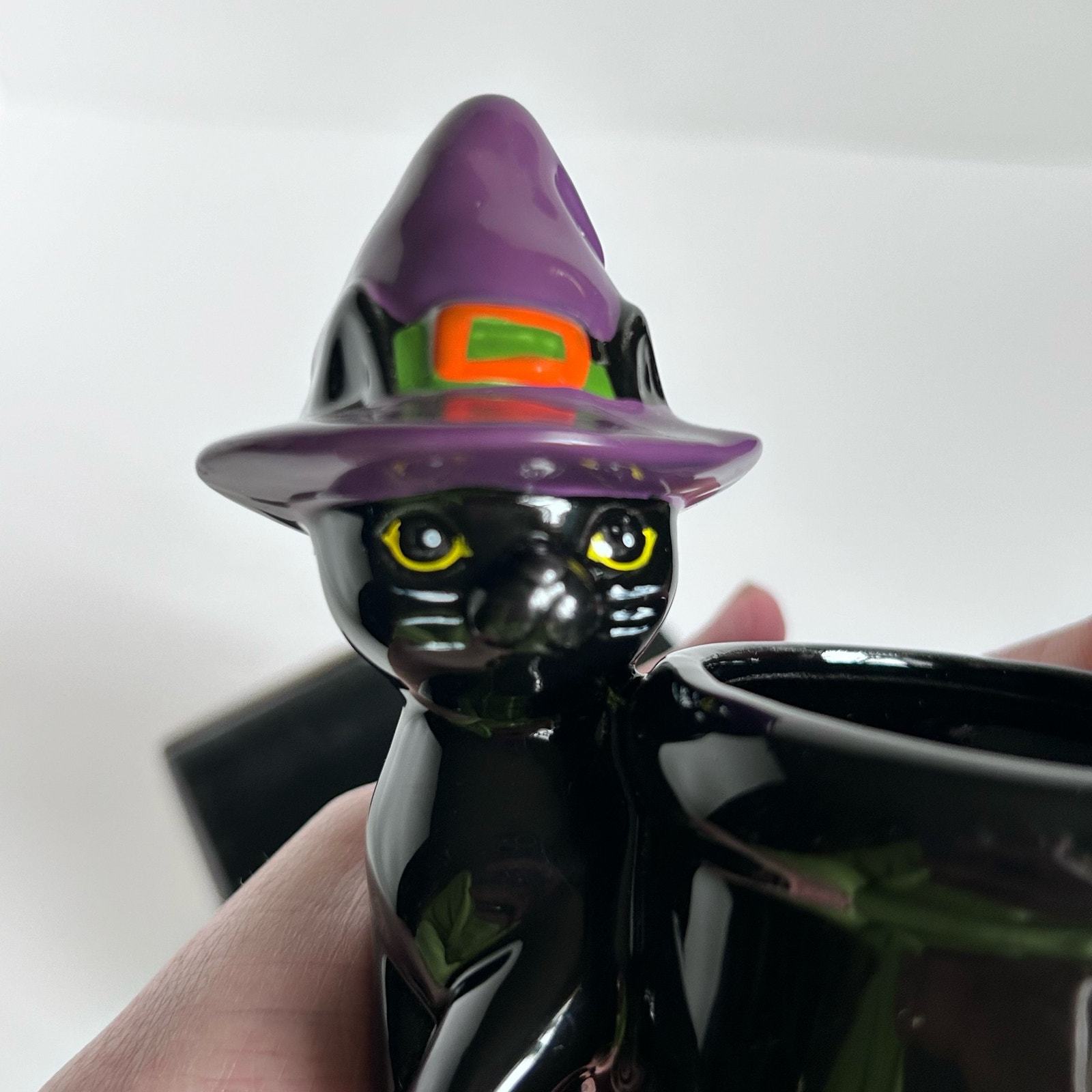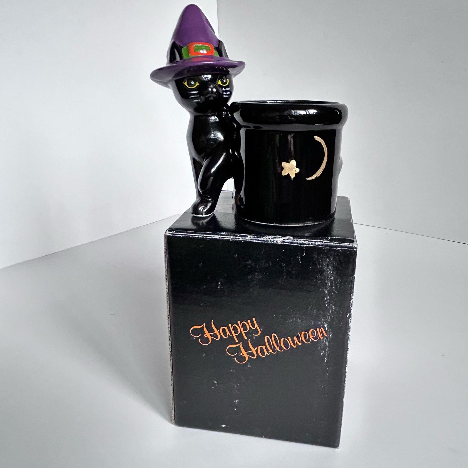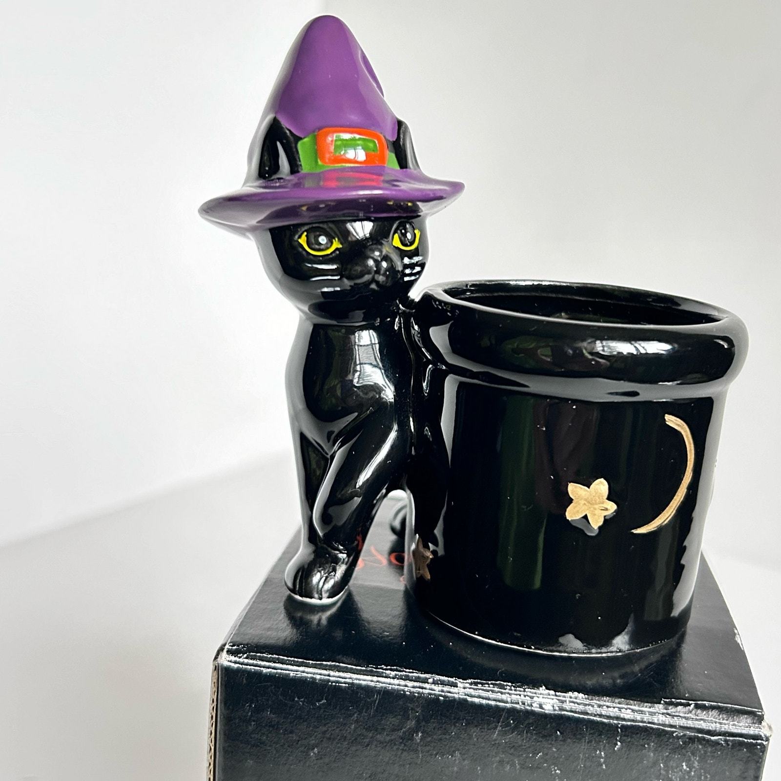 - Vintage Halloween Black Witch Cat Votive Candle Holder 4" in Gift Box