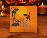 - Vintage HALLOWEEN Crepe PAPER NAPKIN Atomic MCM Green Eyed Black Cats Full Moon