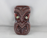 Up for slae is a vintage hand carved Maori mask wall hang. It is made from wood and it has seashell eyes. It does carry good detail. What a great addition to any collection.