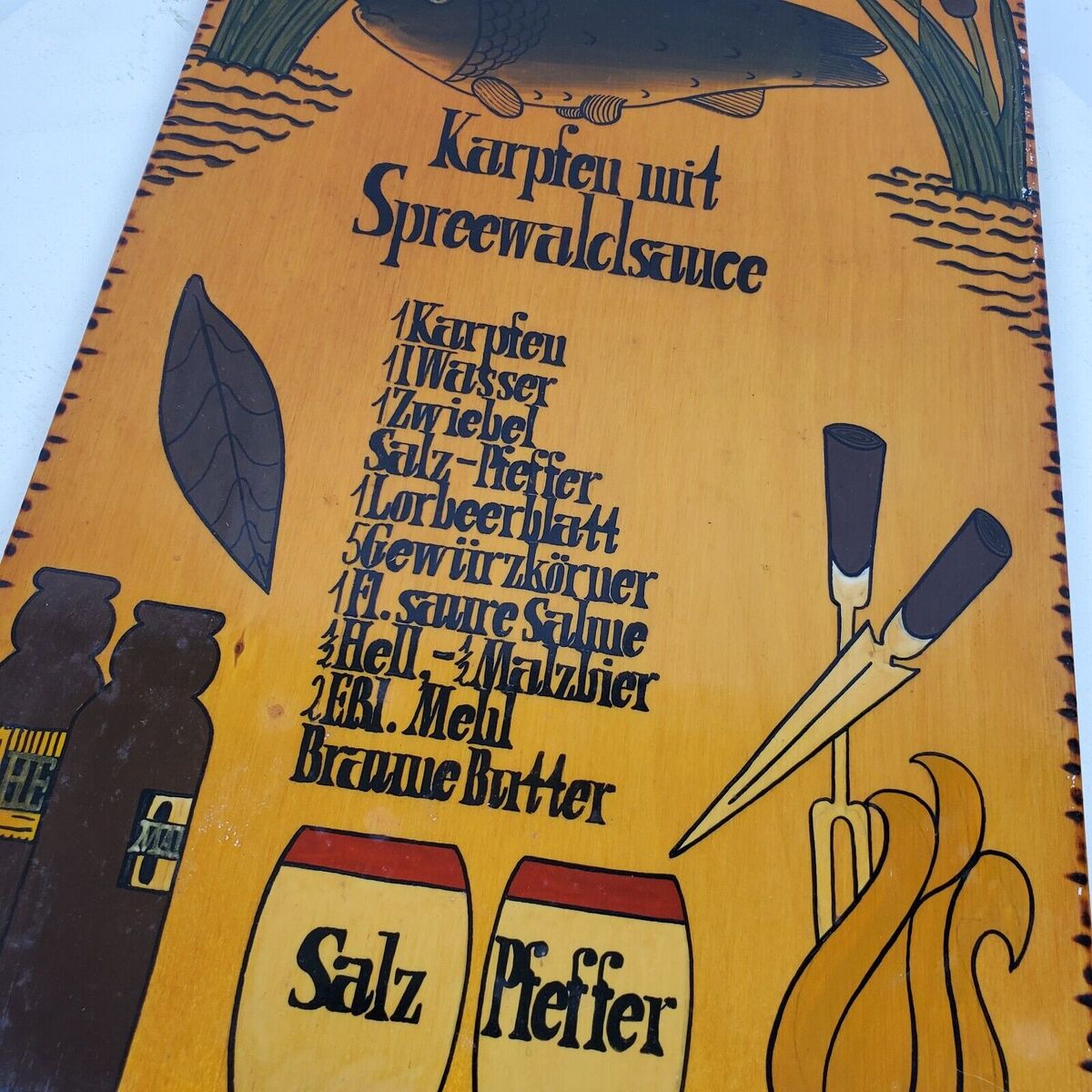 - Vintage Hand Crafted Karpfen Mit Spreewaldsauce Cutting Board ART 16x9.5 Inch