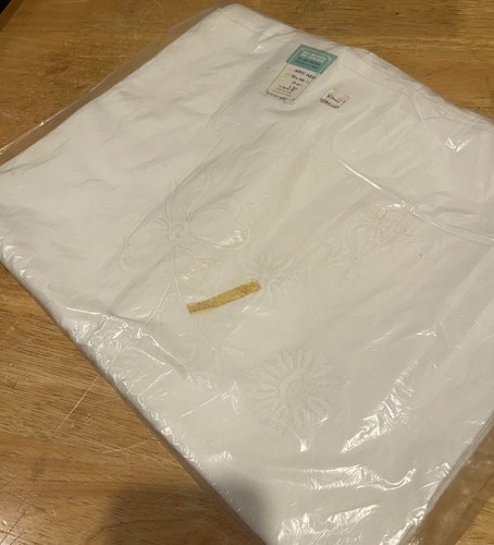 - Vintage Hand Embroidered 72x80” Tablecloth White Daisy Floral Spring Cotton/poly