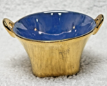 - Vintage Hand Painted Luster GOLD w Blue Basket Open Salt Dip 2 3/16" W 1 1/4 T"