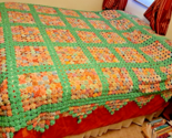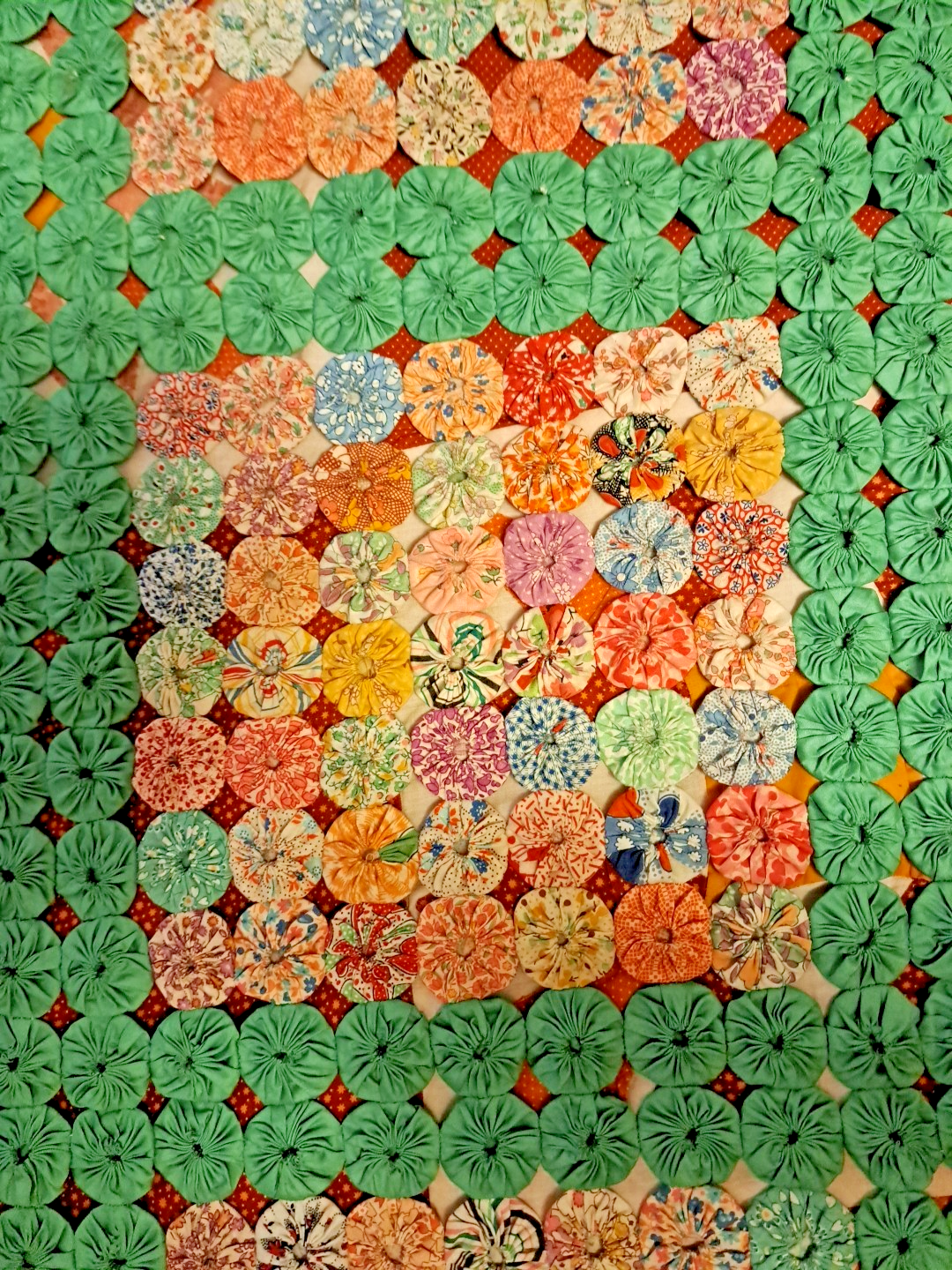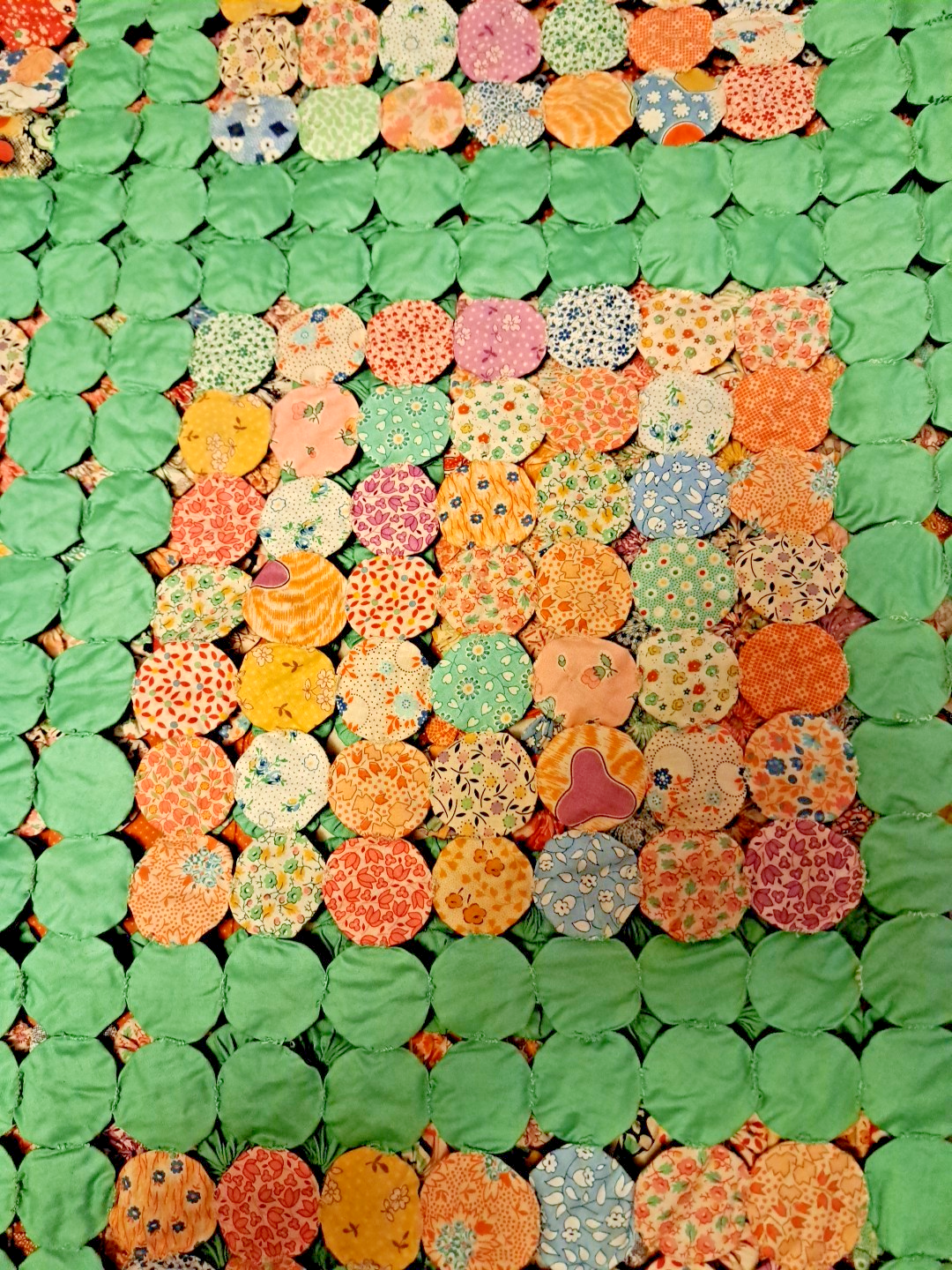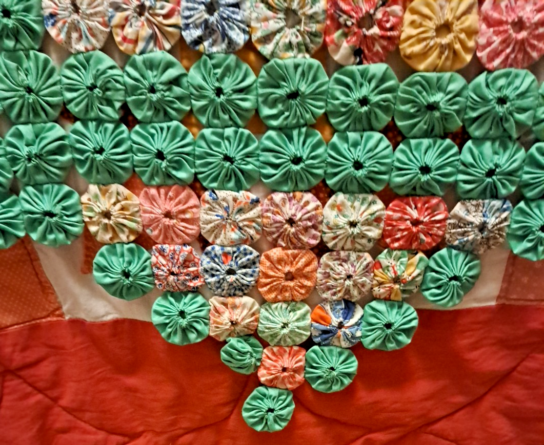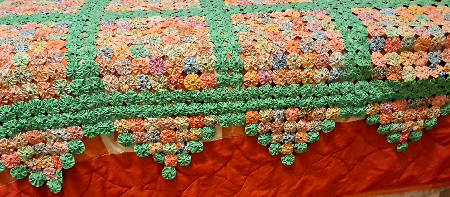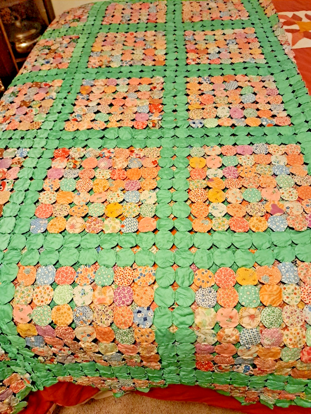 - Vintage Hand Sewn 96" x 77" Queen YO YO Quilt Coverlet Blanket 1930' Cotton