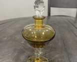- Vintage Handblown Amber Vanity Perfume Bottle with Clear Teardrop Shaped Stopper