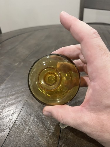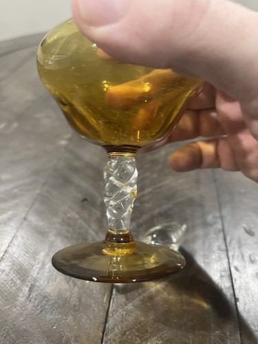 Crafted with care and attention to detail, this bottle is perfect for collectors of decorative glass and crystal items, as well as those who appreciate the artistry of vintage perfume bottles. Its unique amber hue gives it a warm, inviting look, while the clear glass stopper adds a touch of sophistication. Add this beautiful piece to your collection today and enjoy its beauty for years to come.