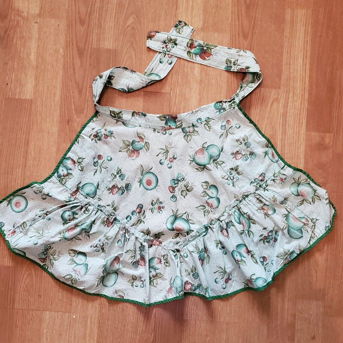 - Vintage Handcrafted Half Apron Green Fruit 18" Long 44" Waist w/ Ties
