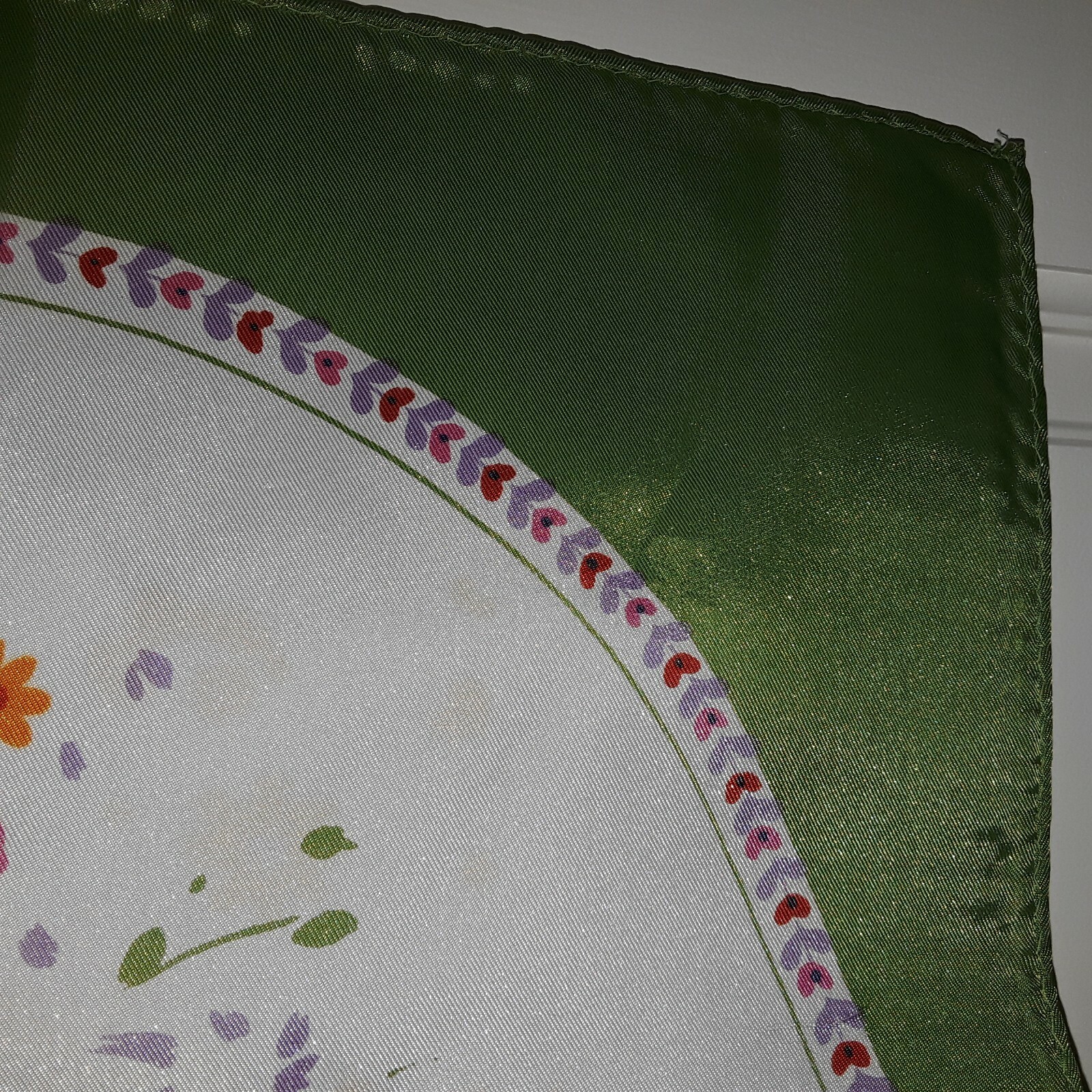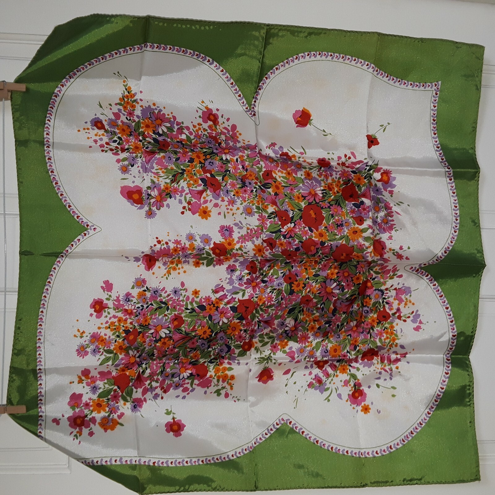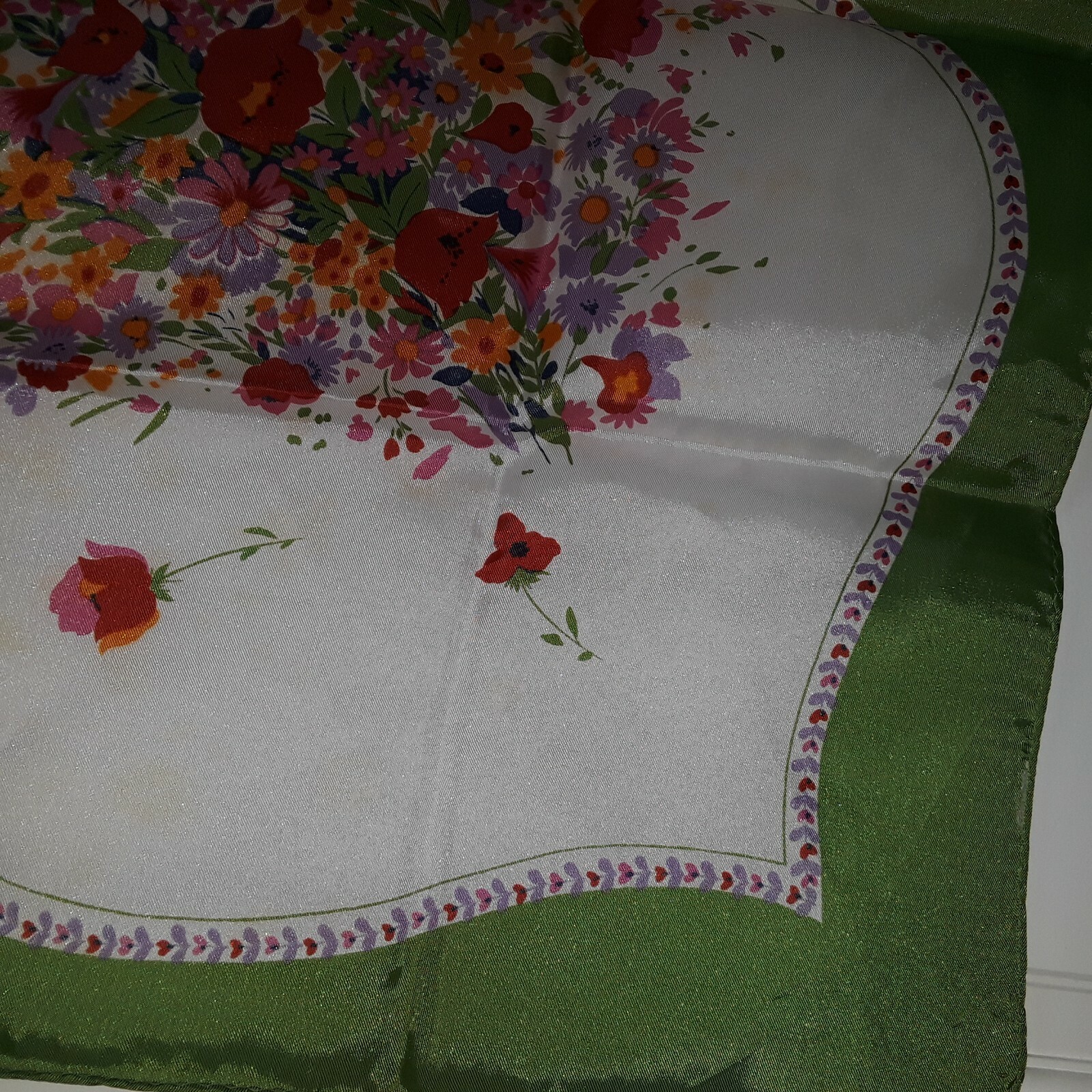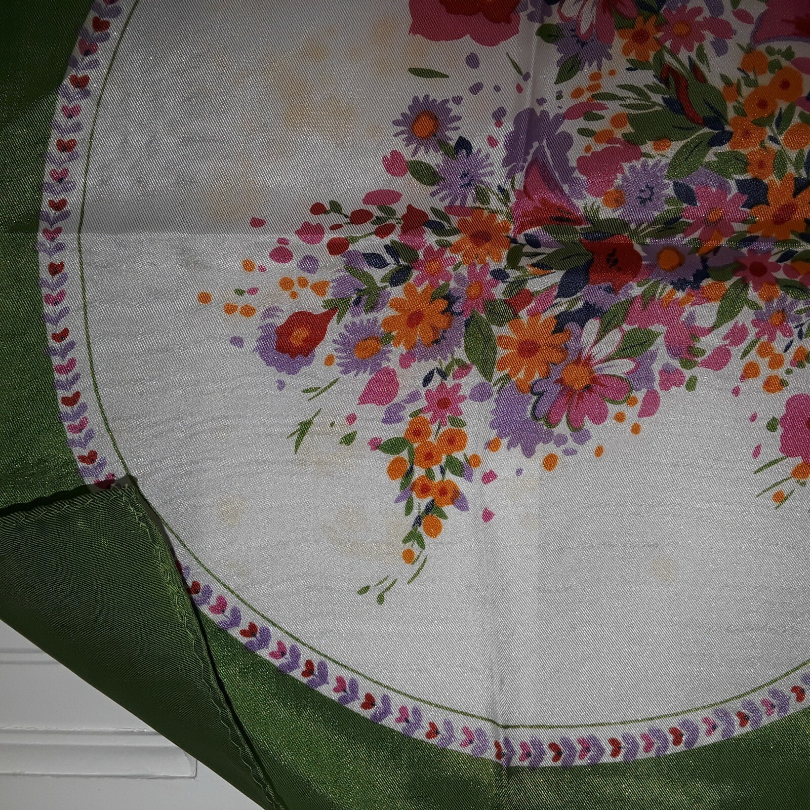 - Vintage Handkerchief green/white with flowers ~ Approximately 26" x 26"