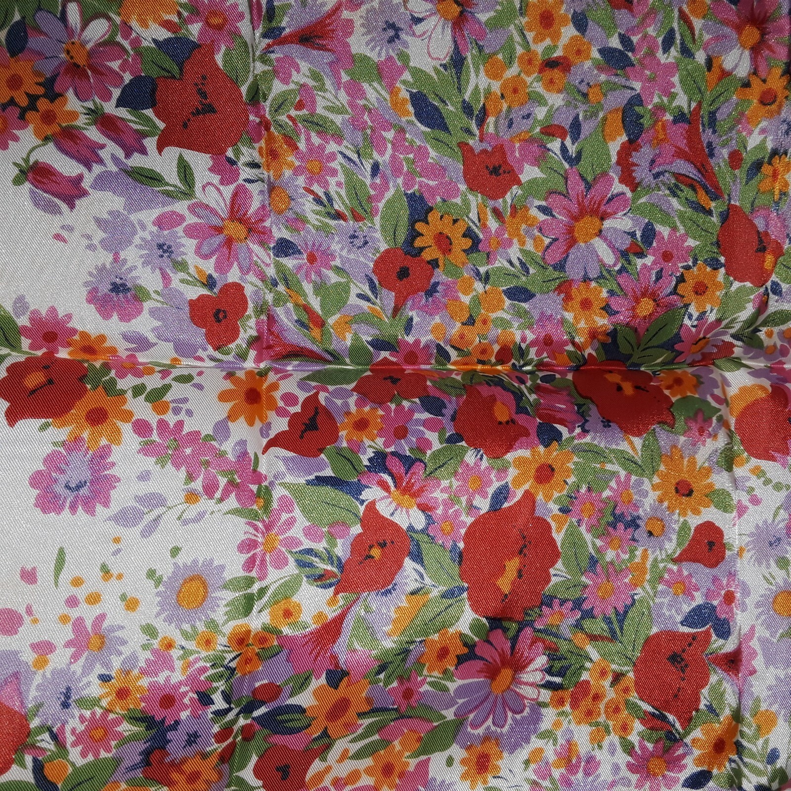 Vintage Handkerchief green/white with flowers ~ Approximately 26" x 26"