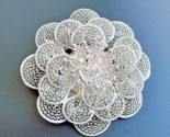 This vintage handmade 925 sterling silver filigree large flower pin is a stunning piece of fine jewelry. The intricate flower shape and silver color make it a beautifully elegant accessory. This unique pin is handmade with original design, showcasing the beauty and craftsmanship of vintage jewelry. Perfect for those who appreciate beauty and intricate details, this pin is a timeless and elegant addition to any collection.