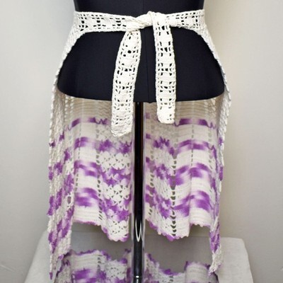 - Vintage Handmade Crochet Half Apron White Purple Boho Farmhouse Kitchen Cottage
